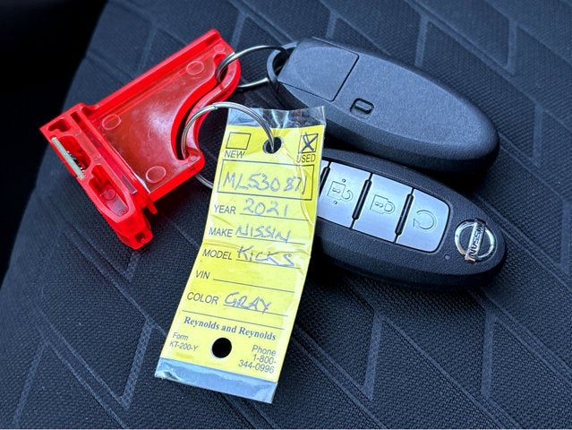 Vaden is pleased to offer this Gun Metallic 2021 Nissan Kicks SR with Charcoal Cloth... Beautifully equipped with 3.927 Axle Ratio, 4-Wheel Disc Brakes, 6 Speakers, ABS brakes, Air Conditioning, Alloy wheels, AM/FM radio: SiriusXM, Apple CarPlay/Android Auto, Auto High-beam Headlights, Auto-dimming Rear-View mirror, Automatic temperature control, Blind Spot Warning, Brake assist, Bumpers: body-color, Carpeted Floor Mats w/Cargo Mat, Compass, Delay-off headlights, Driver door bin, Driver vanity mirror, Dual front impact airbags, Dual front side impact airbags, Electronic Stability Control, Exterior Ground Lighting, Exterior Parking Camera Rear, Front anti-roll bar, Front Bucket Seats, Front Center Armrest, Front fog lights, Front reading lights, Front wheel independent suspension, Fully automatic headlights, Heated door mirrors, Illuminated entry, Knee airbag, Leather Shift Knob, Low tire pressure warning, Occupant sensing airbag, Outside temperature display, Overhead airbag, Panic alarm, Passenger door bin, Passenger vanity mirror, Power door mirrors, Power steering, Power windows, Radio data system, Radio: AM/FM Audio System, Rear Parking Sensors, Rear reading lights, Rear side impact airbag, Rear window defroster, Rear window wiper, Remote keyless entry, Roof rack: rails only, Speed control, Splash Guards Grain (4 Piece), Split folding rear seat, Sport steering wheel, SR Fabric Seat Trim, SR Rear Roof Spoiler, Steering wheel mounted audio controls, Tachometer, Telescoping steering wheel, Tilt steering wheel, Traction control, Trip computer, Turn signal indicator mirrors, Variably intermittent wipers, Wheels: 17" 5-Hole Alloy, and Wheels: 17" Black Alloy! ***Advertised price expires daily, subject to availability. Accessories and aftermarket products might change the advertised price. Pricing includes a $1000 discount for dealership arranged financing AND $1000 Trade-In Assistance, subject to credit approval! Residency restrictions do apply***