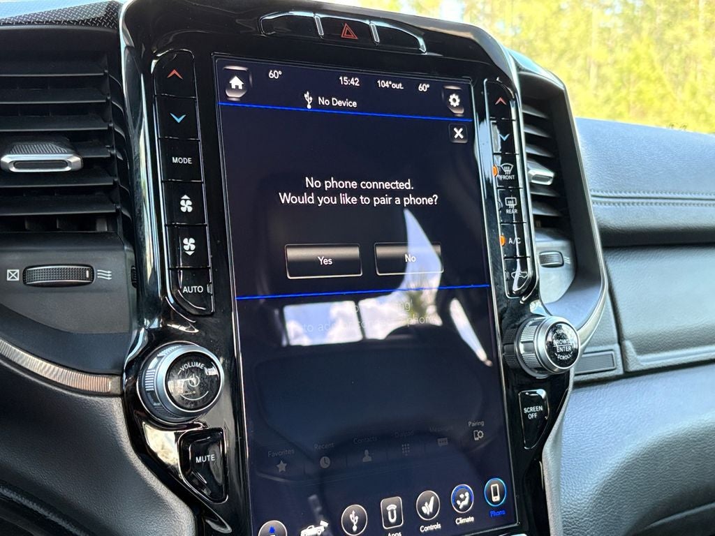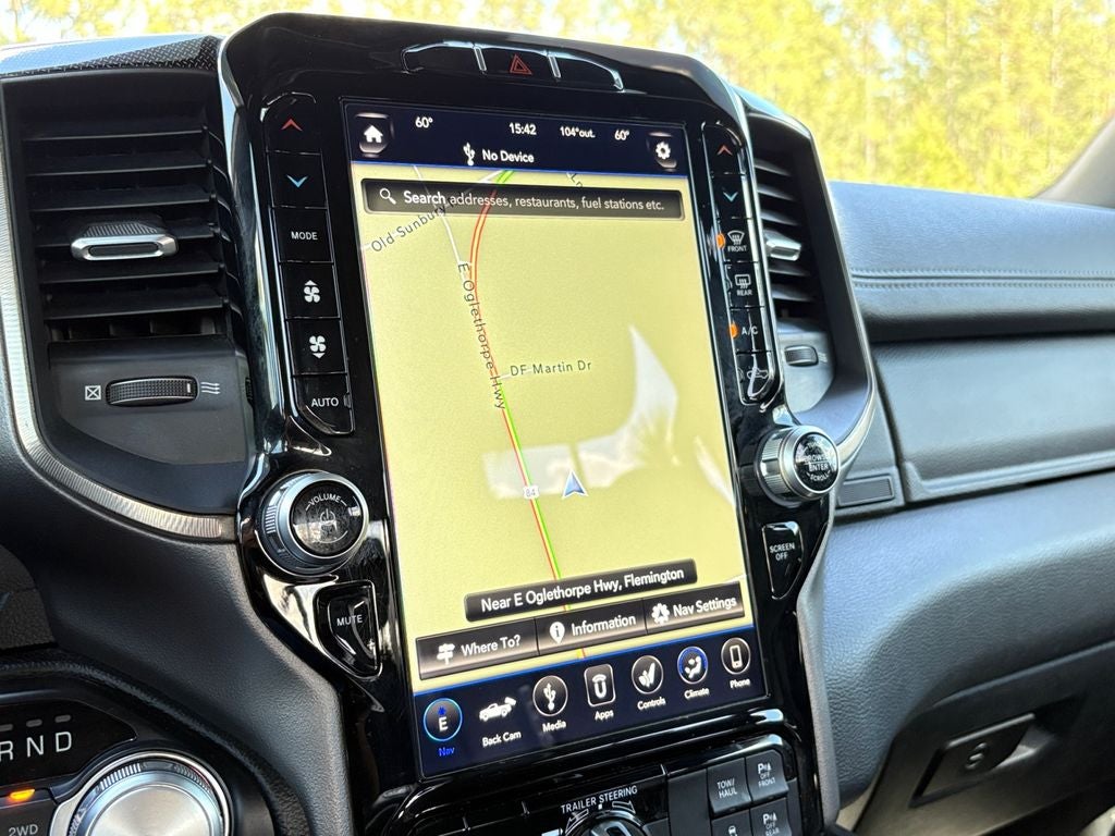 Never get into a cold vehicle again with the remote start feature on the Ram 1500. Protect this 2021 Ram 1500 from unwanted accidents with a cutting edge backup camera system. This unit offers Automatic Climate Control for personalized comfort. Our dealership has already run the CARFAX report and it is clean. A clean CARFAX is a great asset for resale value in the future. This Ram 1500's Forward Collision Warning feature alerts drivers to potential front-end collisions. This Ram 1500 features a hands-free Bluetooth® phone system. The state of the art park assist system will guide you easily into any spot. The leather seats in the Ram 1500 are a must for buyers looking for comfort, durability, and style. The installed navigation system will keep you on the right path. Keep your hands warm all winter with a heated steering wheel in this model . This unit offers Android Auto for seamless smartphone integration.