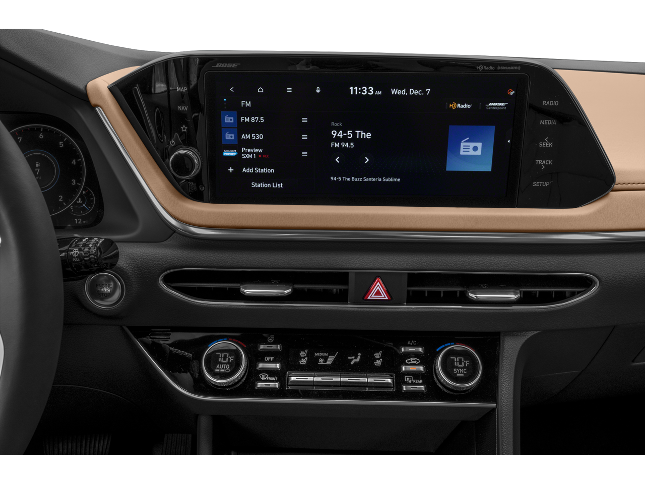 See what's behind you with the back up camera on this 2023 Hyundai Sonata . The leather seats in this mid-size car are a must for buyers looking for comfort, durability, and style. The installed navigation system will keep you on the right path. Engulf yourself with the crystal clear sound of a BOSE sound system in the vehicle. Bluetooth® technology is built into this Hyundai Sonata, keeping your hands on the steering wheel and your focus on the road. The vehicle offers Automatic Climate Control for personalized comfort. This model offers Android Auto for seamless smartphone integration. Never get into a cold vehicle again with the remote start feature on this vehicle. This vehicle is a certified CARFAX 1-owner. This unit is pure luxury with a heated steering wheel. This 2023 Hyundai Sonata offers Apple CarPlay for seamless connectivity. Maintaining a stable interior temperature in this 2023 Hyundai Sonata is easy with the climate control system.