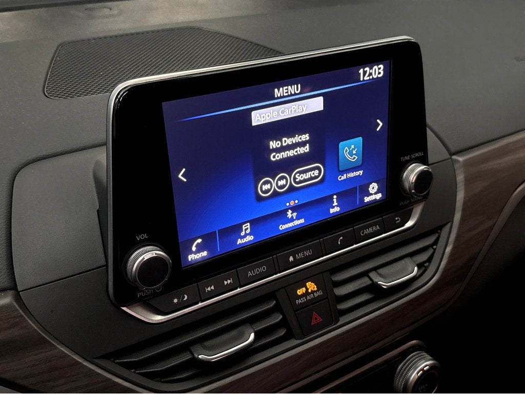 - Radio: AM/FM Audio System -inc: RDS, MP3 and aux-in, 6 speakers, NissanConnect featuring Apple CarPlay, Android Auto, 8" color touch-screen display, 1 front illuminated USB port (type-C) for compatible devices, SiriusXM radio w/advanced audio features, Bluetooth® hands-free phone system, streaming audio via Bluetooth®, hands-free text messaging assistant, Siri Eyes Free and Google Assistant voice recognition
