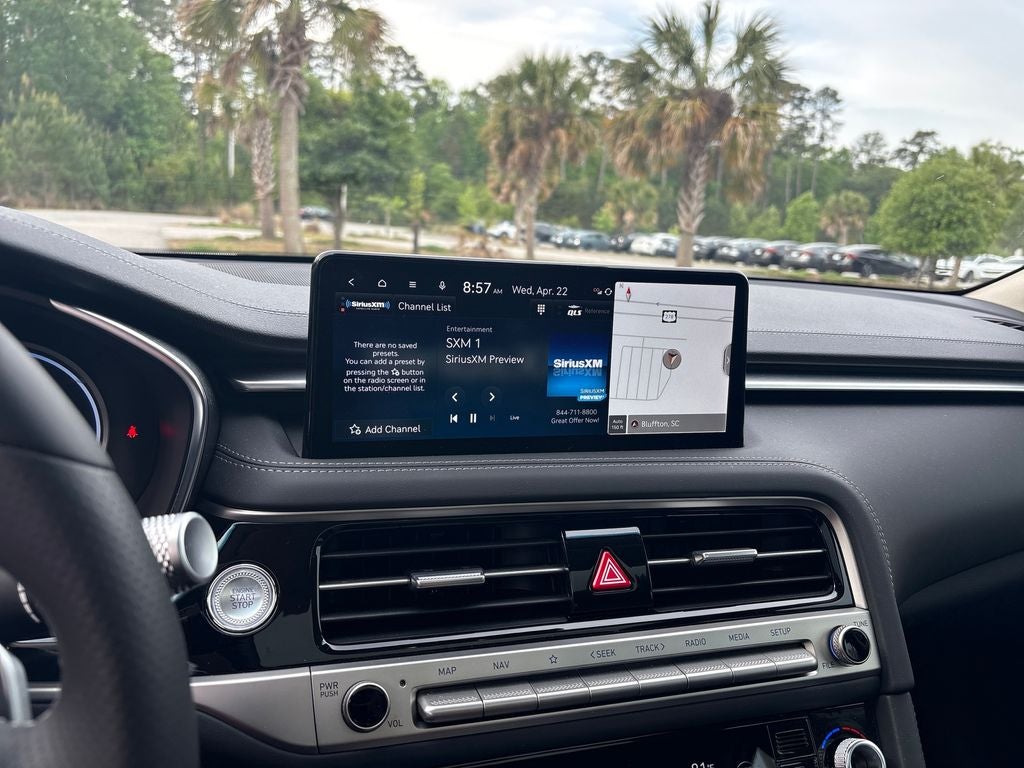 - Radio: AM/FM/HD Lexicon Prem Audio System -inc: QuantumLogic surround sound, 15 high efficiency speakers including 2 subwoofers, Lexicon 11-channel digital external amplifier, speed-sensing, 5th generation navigation system w/10.25" touchscreen, dynamic voice recognition, connected routing, over the air updates, Android Auto and Apple CarPlay, USB connectivity, SiriusXM satellite radio w/90-day trial subscription (not available in Alaska or Hawaii), Genesis connected services, Bluetooth® hands-free phone and audio streaming system